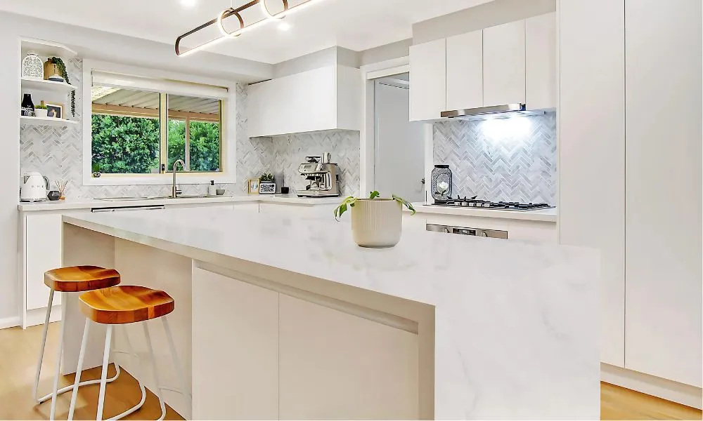 A Carrara Grigio benchtop embodies classic Italian elegance with a contemporary twist. It can brighten a space, adding a touch of classic charm while seamlessly blending with various design styles, from traditional to modern minimalist. It offers a clean, crisp aesthetic that is both calming and elegant, making it a popular choice for kitchens and bathrooms.